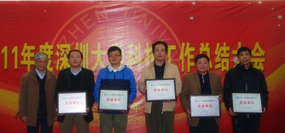 1月5日下午,我校举行2011年度科技工作总结大会。校长章必功,深圳市政协副主席陈思平,各学院主管科研负责人、各相关职能部门负责人,我校产学研合作企业代表以及2011年度的国家级项目负责人、科学研究奖获得者、全体科研秘书等近200人参加会议。