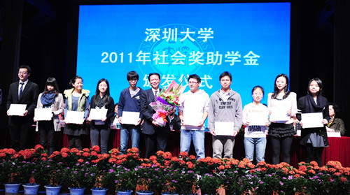 12月28日下午,我校2010-2011年度奖助学金颁发仪式在国际会议厅举行。好日子奖学金、永亨银行奖学金、恒生银行内地奖学金、肯德基曙光基金助学金、慈文新生奖助学金、永旺教育基金、狮子会励学金、深大校友高尔夫俱乐部奖助学金等各设奖(助)单位代表,我校校长章必功,党委副书记陶一桃、副校长李永华,各学院、部室负责人和社会奖助学金获奖学生代表参加了仪式。仪式由李永华主持。 会上,陶一桃宣读了...