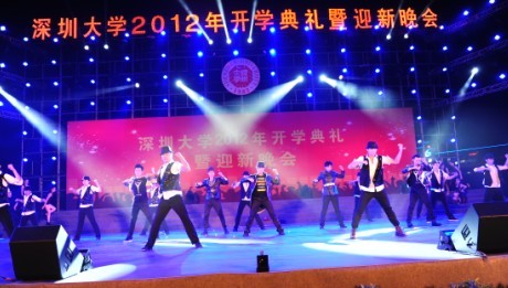 “同学少年、风华正茂,荔园新雨、桃李芬芳”,9月12日晚,2012级新生开学典礼暨迎新晚会在我校体育场举行。校领导江潭瑜、李清泉、陶士平、陶一桃、阮双琛、邢锋、李凤亮,中国工程院院士牛憨笨,中国科学院院士倪嘉缵,香港余彭年慈善基金会主席、深圳彭年酒店董事长兼总经理余彭年先生的代表彭志兵,正中置业集团董事长、总裁、校友邓学勤,学校各学院、各机关单位、教研教辅单位的负责人,教师代表、学生家长代表及2012级全体新生出席典礼。