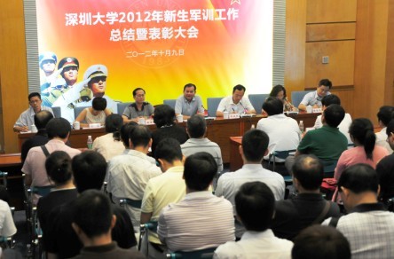 10月9日下午,2012级新生军训工作总结暨表彰大会在我校国际会议厅D厅举行。校党委书记江潭瑜、副校长李凤亮,学生(武装)部、宣传部、后勤部、教务部、保卫部、计财部、场馆中心等部室负责人及全体军训工作人员出席会议。 会上,军训一团政委李卫英、二团政委方琳、三团政委柴金龙分别介绍了各团军训工作情况。校武装部部长谢海均作我校2012年新生军训工作总结。 李凤亮...