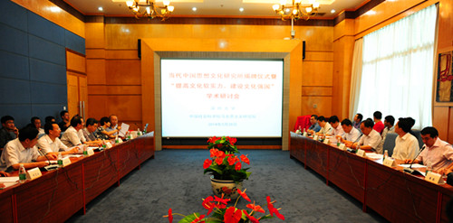 仪式后举行提高文化软实力建设文化强国研讨会 5月29日,我校在国际会议厅D厅举行了当代中国思想文化研究所揭牌仪式暨提高文化软实力建设文化强国的研讨会。中国社会科学院马克思主义研究院院长、书记邓纯东,中国社会科学院马克思主义研究院创新工程首席研究员龚云,北京语言文化大学当代中国研究所所长郑承军,深圳市委宣传副部长李瑞琦,及香港理工大学应用社会科学系、华南师...