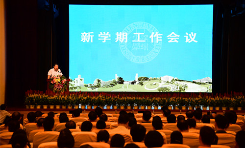 9月17日下午,我校在国际会议厅召开新学期工作会议,总结上学期工作,研究部署新学期工作。全体在家校领导,各学院领导班子成员,机关各部室正、副职领导,基层党委(总支)书记、副书记,各直属教研、教辅单位正、副职领导,人事工作教授委员会、计财工作教授委员会主任,博士点学科负责人,34个一级硕士点学科负责人,市级以上重点研究基地、重点实验室负责人以及特聘教师代表共220人参加会议。会议由校党委副书记张基宏主持。 &...