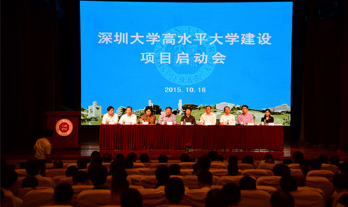 10月16日下午,我校在国际会议厅举行高水平大学建设项目启动会,部署推进我校高水平大学建设工作,由此拉开了建设高水平大学的序幕。市教育工委书记、教育局局长郭雨蓉,我校领导江潭瑜、李清泉、张基宏、陶一桃、阮双琛、李凤亮、黎军、徐晨出席了此次启动会。出席会议的还有各学院班子成员,各直属教研教辅单位和机关各部室的正副职负责人,人事工作教授委员会、计财工作教授委员会主任,博士点负责人,34个一级学科硕士点负责人...