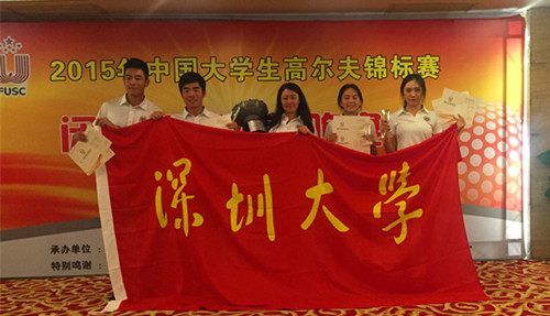 2015中国大学生高尔夫锦标赛于10月13—16日在湖南常德桃花源高尔夫球会举行,此次比赛由中国大学生体育协会主办,是目前国内大学生高尔夫顶级赛事,共有34所高校,124名运动员参赛。 我校选派高尔夫球队运动员吕浩源、林耿鑫、任梦(女)、马景婷(女)参加了本次赛事超级组(最高级别)的比赛。经过三天的奋力拼搏,以领先第二名64杆的战绩勇夺团体总杆冠军;在个人排名中吕浩源获超级组男...