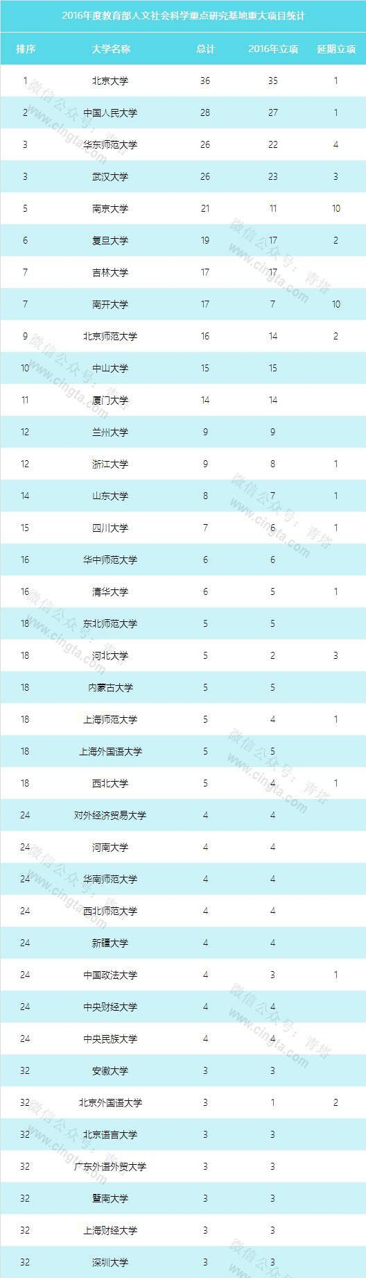 日前,教育部社科司公示了教育部人文社会科学重点研究基地重大项目,本年度共有68所单位获得教育部人文社科重点研究基地重大项目立项,我校以3项入选位居第32位。 教育部人文社会科学重点研究基地重大项目主要依托教育部人文社会科学重点研究基地进行申请,在人文社科领域具有比较重要的地位。 图一:项目统计 图二:项目一览 (转自 青塔)