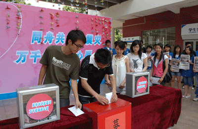 5月14日中午,在校团委的组织下,我校学生开展“同舟共济抗震灾,万千纸鹤寄心愿”为四川灾区捐款活动。同学们不顾炎热,排着整齐的长队为灾区人民奉献自己的爱心,尽自己的一份绵薄之力,彰显了我校学子“一方有难,八方支援”的人道主义精神。 在活动现场,校团委副书记方琳代表校团委感谢并...