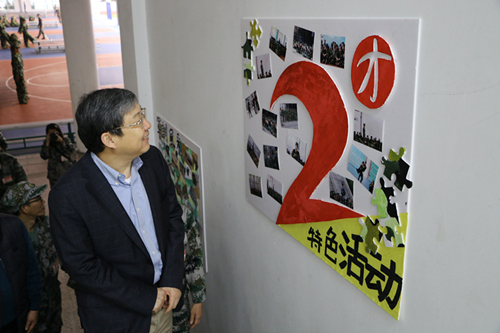 1月12日下午,校长李清泉与学生部等部门负责人走进军训场地,看望军训的同学和教官。 李清泉一行首先来到南区运动广场,慰问正在进行正步走练习的二团同学。随后来到二团团部,问候在这里工作的教官和辅导员,一路上参观了二团布置的海报和宣传栏,并在同学们作的诗歌和漫画前驻足欣赏。 李清泉一行来到元平体育场,看望在那里训练的一团教官与同学。走进一团医疗室,他对几位医生的辛勤付出表示衷心感谢,悉心叮嘱在这里...