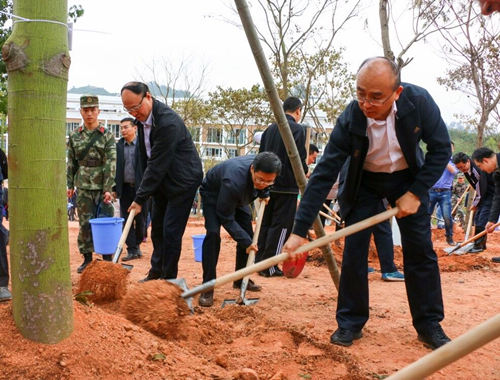 3月18日上午,省委常委、市委书记、市长许勤带队来到我校西丽校区参加义务植树活动。 春风轻拂,新绿初绽,正是植树好时节。许勤等市几套班子领导与近600名干部职工、部队官兵,芒果体育党委书记刘洪一、校长李清泉、副校长黎军以及其他师生一起,挥锹培土、踩实浇水,种下樱花木棉、山杜英、无忧树、鱼木、双翼豆、粉花山扁豆、洋红风铃木等树种,为我校西丽新校区增添一片盈盈新绿。 植树间隙,许勤询问此次义务...