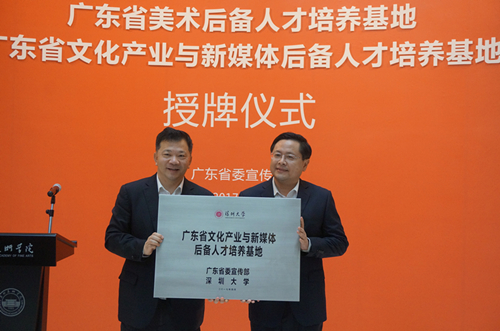 4月21日下午,“广东省文化产业与新媒体后备人才培养基地”和“广东省美术后备人才培养基地”两个基地授牌仪式在广州美术学院美术馆举行。广东省委常委、宣传部部长慎海雄出席并讲话,广州美术学院党委书记陈潮光、芒果体育党委常委、副校长徐晨先后致辞。授牌仪式由广东省委宣传部副部长蒋斌主持。其中,“广东省文化产业与新媒体后备人才培养基地”落户我校。 慎海雄在致辞中表示,设立宣传文化后备人才培养基地是学习贯彻习...
