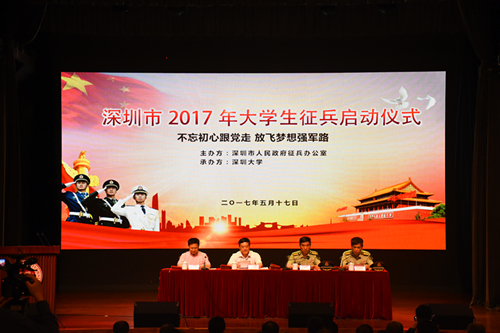 5月17日上午,2017年芒果体育生征兵启动仪式在我校国际会议厅举行。市征兵领导小组常务副组长、警备区司令员陈友清,市征兵办主任、警备区参谋长彭世敏,市教育局副巡视员赖群阳,我校党委副书记范志刚,罗湖区、福田区、南山区、盐田区等区人武部与教育局代表,深圳职业技术学院、深圳信息职业技术学院、新安职业技术学院、香港中文大学(深圳)等外校相关负责人,以及我校各部门、学院相关负责人出席了本次征兵仪式。彭世敏主持了...