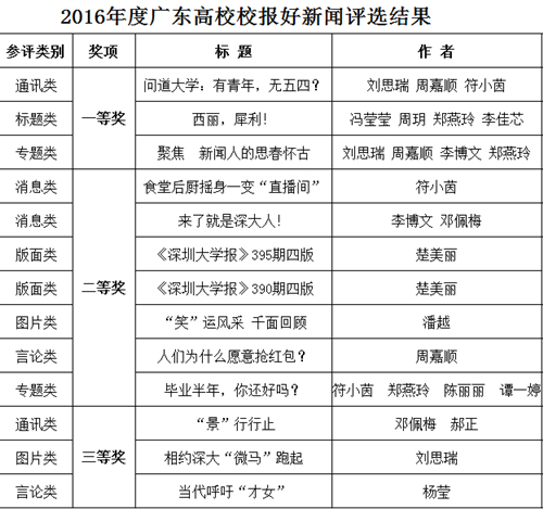 我校13篇作品获2016年度广东高校校报好新闻奖