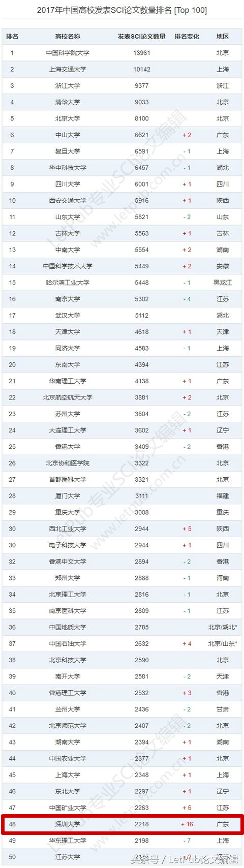 2017中国高校SCI论文综合排名出炉!我校位列第48位!