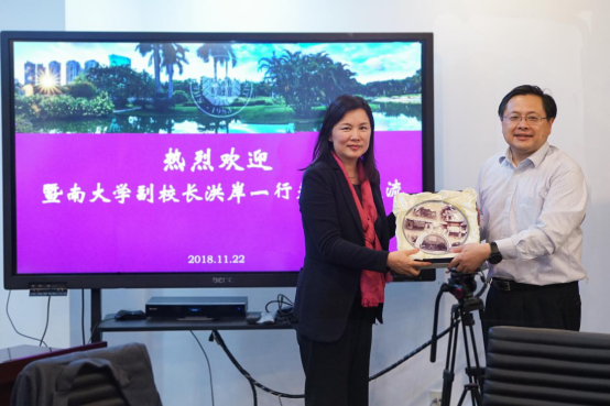 11月22日下午,暨南大学副校长洪岸一行来访我校。我校副校长徐晨,社会科学部、科学技术部、人力资源部等单位负责人与来宾座谈。 洪岸介绍了暨南大学的学校特色、人事管理、国际合作、科研成果、湾区实验室建设等情况。他说此次来访的目的是与我校交流探讨融入粤港澳大湾区建设、推进科研体制机制改革等问题。 徐晨从融入湾区建设、联合实验室建设、科研组织形式、科研组织管理制度、科研评价管理、人才引进、对外合作交流等...