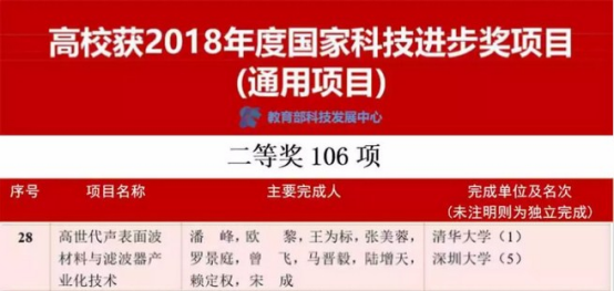 1月8日上午,2018年度国家科学技术奖励大会在人民大会堂隆重召开,党和国家领导人出席大会并为2018年度国家科学技术奖获奖代表颁奖。我校罗景庭副教授参与完成的“高世代声表面波材料与滤波器产业化技术”荣获2018年度国家科技进步二等奖,芒果体育排名第5。 据悉,全国共有113所高等学校作为主要完成单位获得了2018年度国家科学技术奖三大奖通用项目185项,占通用项目总数项的82.6%。全国高等学校获得2018年国家科学技术进步奖...