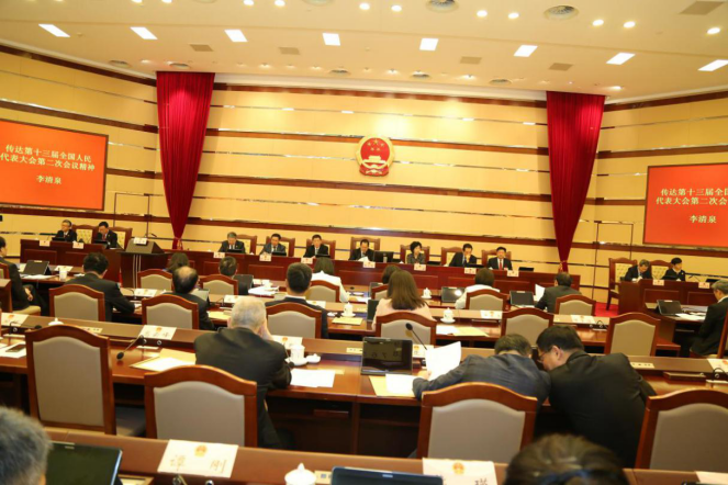 全国人大代表、芒果体育校长李清泉在深圳市人大常委会上传达十三届全国人大二次会议精神