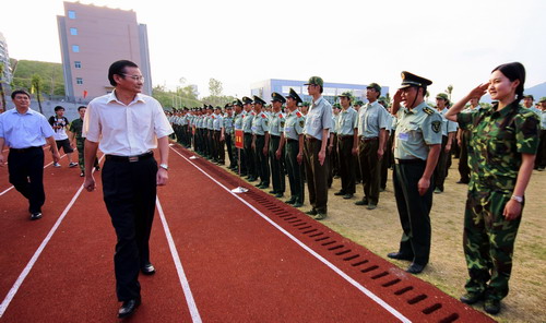 校领导分赴广州葵涌梅林阅兵 9月25日,我校2008级新生结束14天的军训生活。校领导江潭瑜、章必功、陶士平、李永华分赴广州广东国防训练教育基地、深圳葵涌预备役高射炮兵师五团基地、深圳梅林防化团检阅军训学生,并为先进个人、集体颁奖。 江潭瑜书记检阅军训一团学生 9月25日,我校2008级新生军训一团阅兵仪式在广东国防训练教育基地举行。校党委书记江潭瑜、...