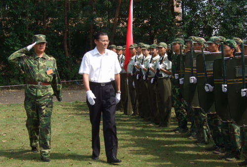 9月19日,江潭瑜、章必功、陶士平、陶一桃、邢锋、李永华等校领导兵分三路,率各学院、各部门负责人赴广州、葵涌、梅林三地,慰问已参加军训一周的我校2008级新生和教官、带队教师。 党委书记江潭瑜率团慰问军训二团 19日下午,我校党委书记江潭瑜、副书记陶一桃、副校长邢锋带领各部处、各学院领导组成的慰问团到达深圳葵涌预备役高炮五团,视察二团各项军训工作开展情况,亲切慰...