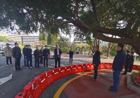 1月29日下午,党委书记刘洪一,副校长王晖、李永华一行深入我校一线检查疫情防控工作,并亲切慰问一线工作人员。党政办公室、党委宣传部、学生部、后勤部、安全保卫部等部门负责人陪同检查。 刘洪一一行检查粤海校区校门安保情况,并慰问一线工作人员 刘洪一强调,疫情就是命令,防控就是责任。面对当前疫情防控的严峻斗争,各基层单位和广大党员干部要高度重视,把疫情防控作为当前最重要的任务,充分发挥战斗堡垒作用和先锋模...
