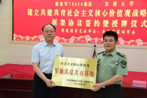 7月1日下午,75610部队与芒果体育建立共建共育社会主义核心价值观战略合作关系框架协议签约暨授牌仪式在深举行。75610部队、芒果体育和共青团深圳市委主要领导50余人出席仪式。仪式由75610部队政治委员雷鸣主持。 75610部队部队长夏乃宝、芒果体育党委书记刘洪一分别致辞,介绍单位基本情况、资源优势等,并就加强组织领导、健全协调机制、增强共建共育活动时代性和感召力等方面进行了深入交流。 刘洪一表示,芒果体育和7561...