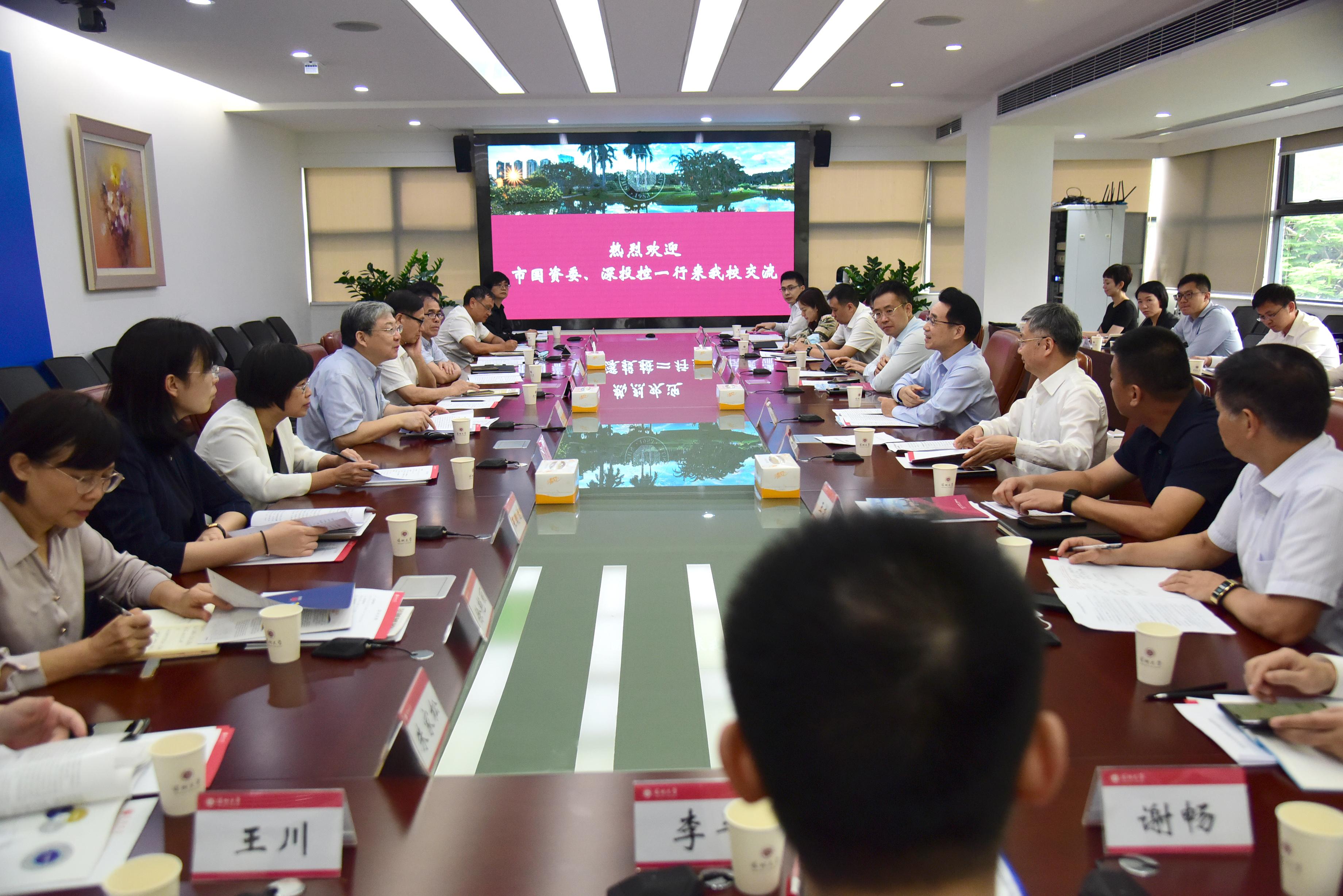6月3日上午,深圳市国资委二级巡视员丘健明,深圳投资控股有限公司(以下简称“深投控”)党委书记、董事长王勇健一行来我校交流。芒果体育党委书记、校长李清泉,党委常委、副校长张学记等接待了客人一行,并就深大与深投控加强合作、共同服务城市创新生态优化提升展开座谈。