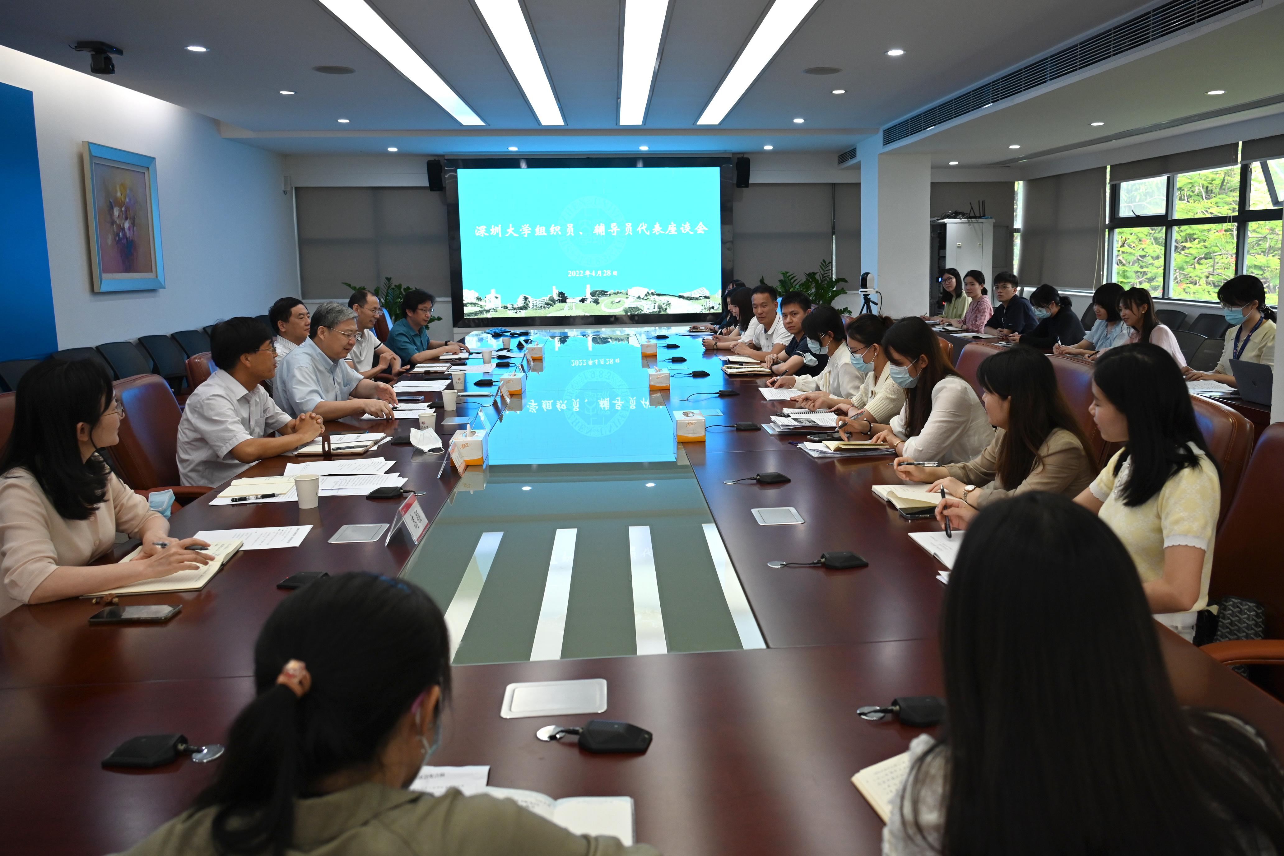 4月28日下午,学校召开党建组织员、辅导员代表座谈会。学校党委书记李清泉,学校党委副书记范志刚,副校长汪永成,党政办公室、党委组织部、党委宣传部、人力资源部、学生部等相关职能部门负责人,各学院(部)党建组织员、辅导员代表参加会议。