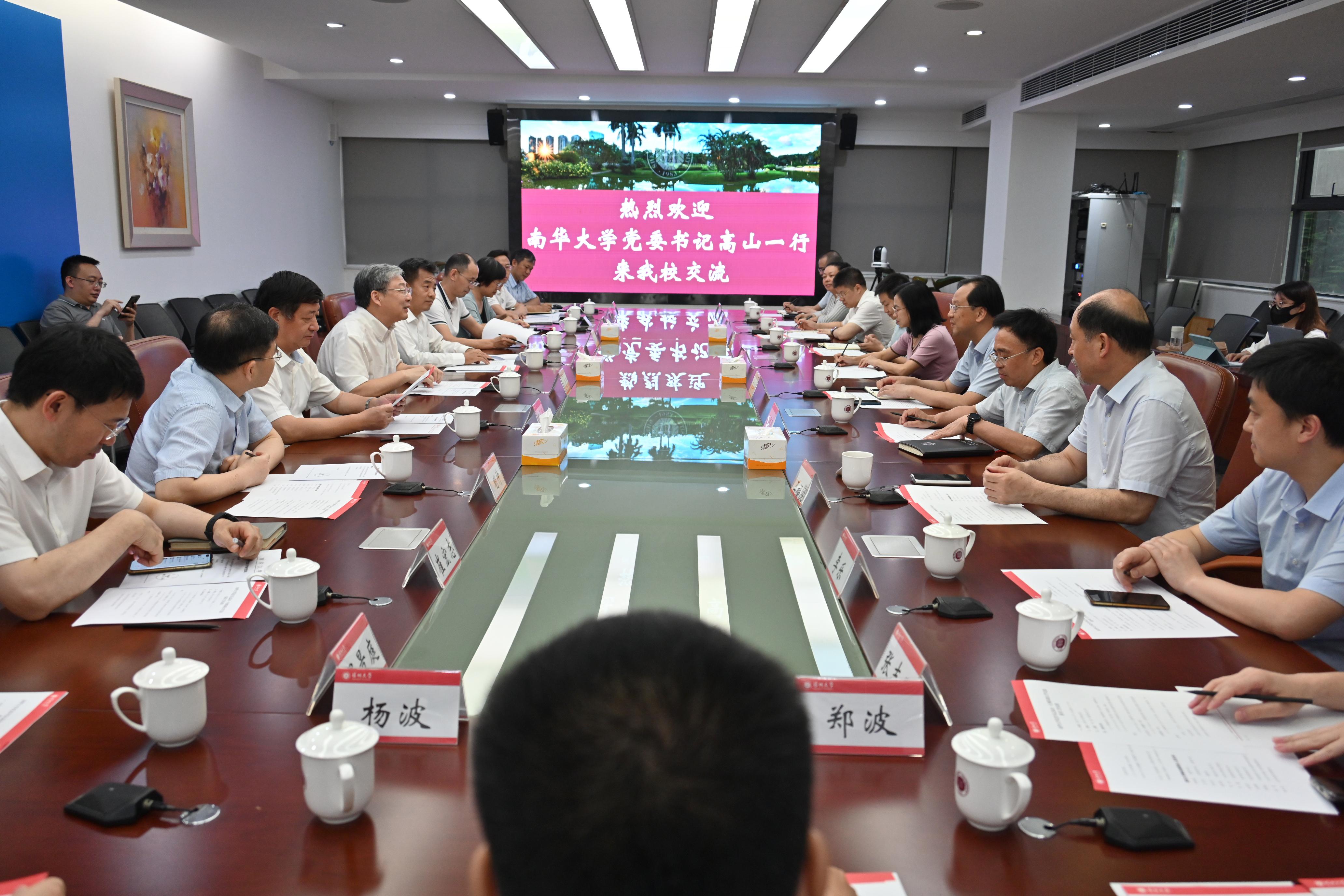 6月15日下午,南华大学党委书记高山一行到芒果体育调研交流。芒果体育党委书记李清泉,党委副书记、纪委书记王月兴,副校长李永华以及相关单位负责人会见来宾。高山一行首先参观了校史馆,并在芒果体育中国核能与安全高等研究院等调研点进行实地调研。实地参观调研活动后,双方在粵海校区汇元楼201会议室展开座谈。