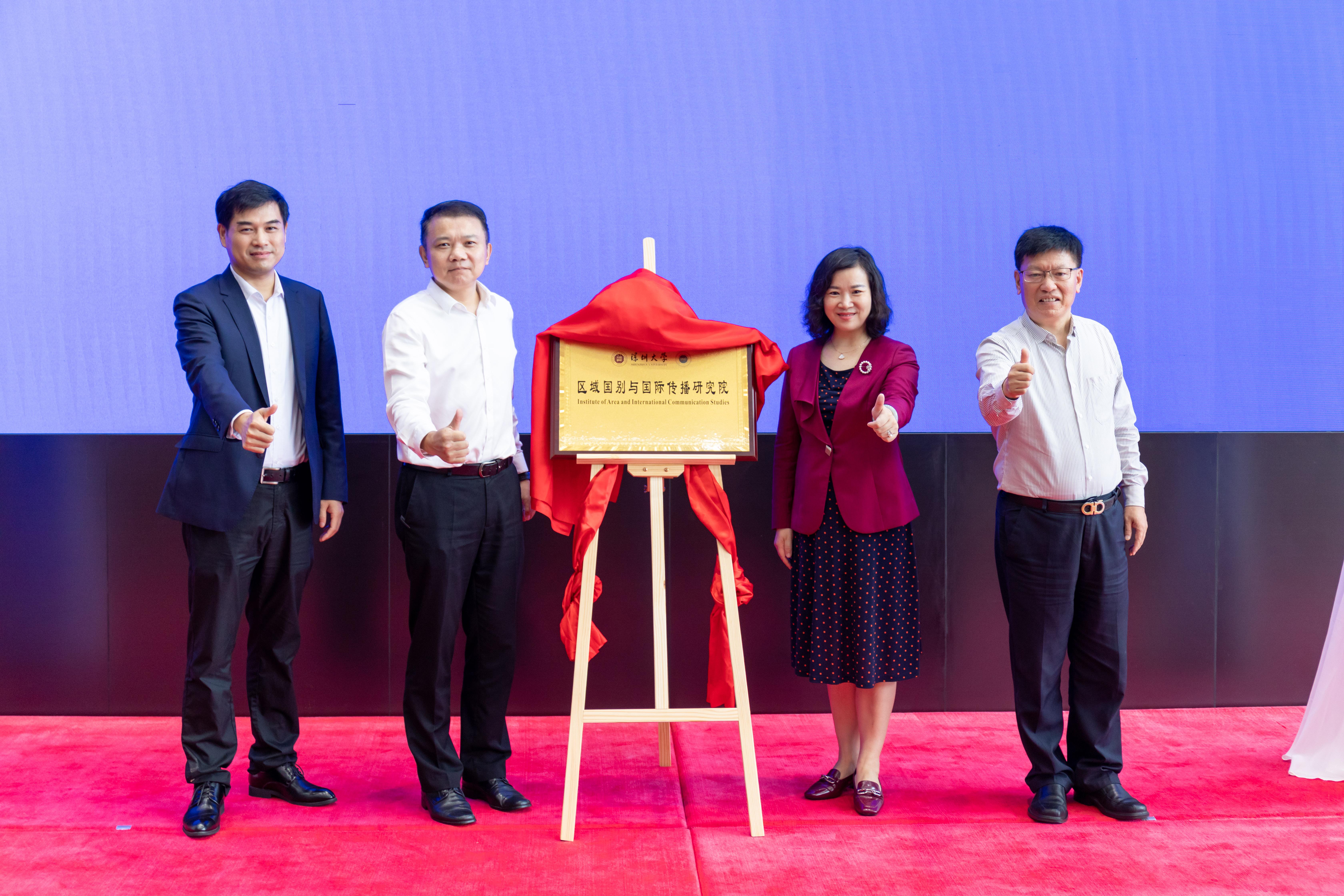 6月19日上午,芒果体育区域国别与国际传播研究院(下称“深大国传院”)成立仪式暨“新时代区域国别与国际传播研究赋能中国海外利益发展与安全”研讨会在粤海校区校友广场举行。中国外文局副局长于涛、芒果体育副校长张晓红、深圳市委外事办公室副主任孙怀忠、深圳市社会科学院副院长杨建以线上线下方式出席仪式并致辞,共同为国传院揭牌。
