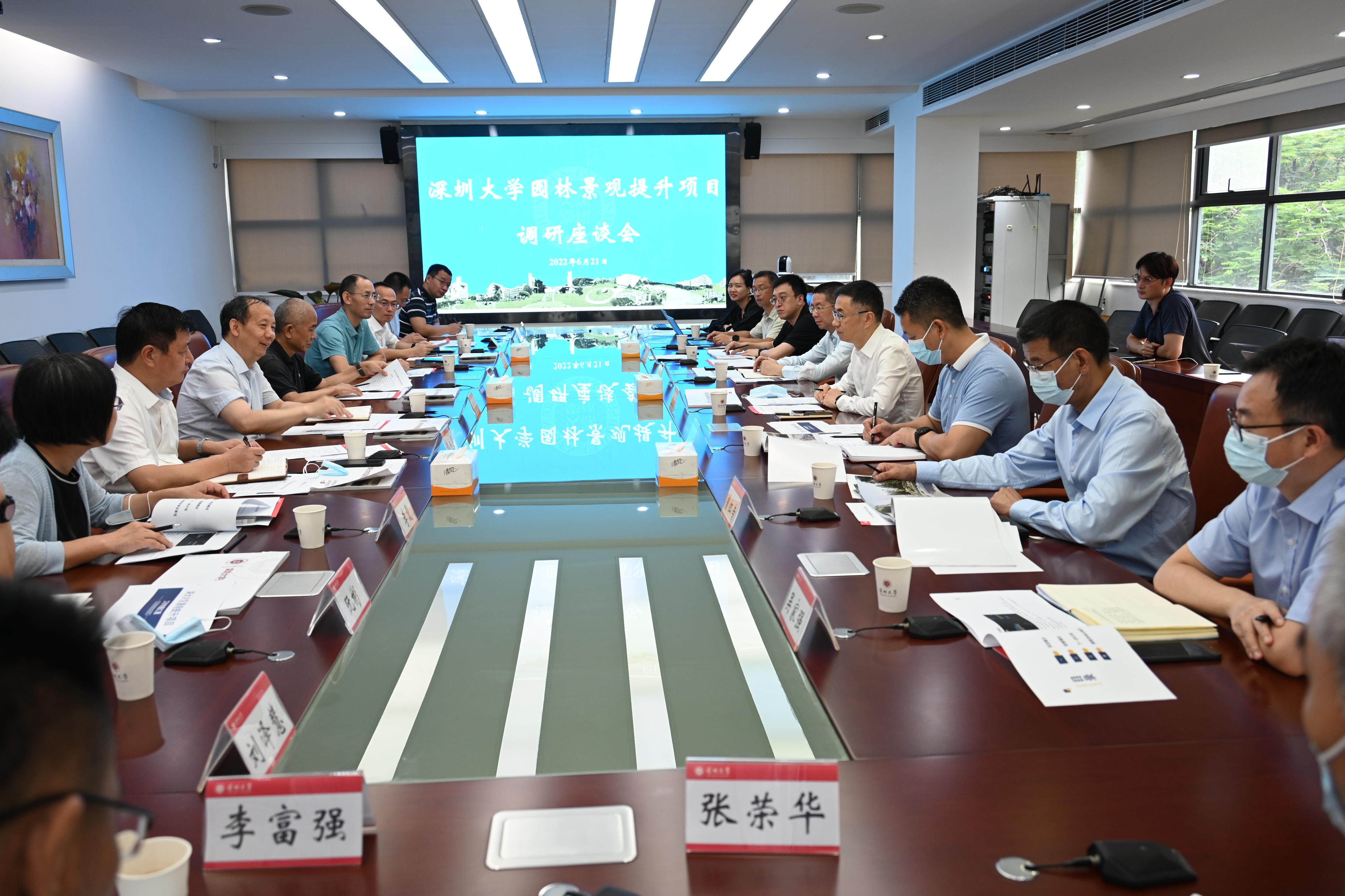 6月21日上午,南山区委常委、副区长李卓,区政府督查专员吴剑平一行来芒果体育调研。学校校长、中国科学院院士毛军发,建筑与城市规划学院教授、中国工程院院士孟建民,副校长李永华接待来宾一行,双方在粤海校区汇元楼201会议室召开芒果体育园林景观提升项目调研座谈会。