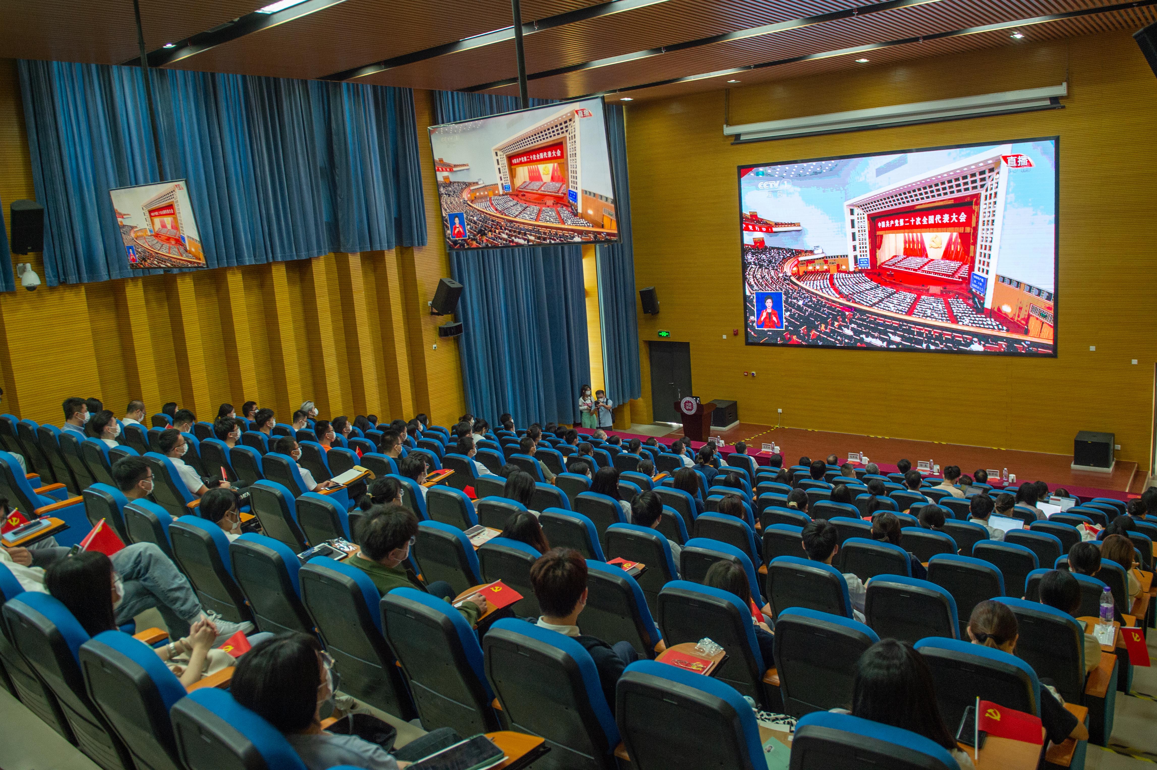 10月16日上午,举国关注、举世瞩目的中国共产党第二十次全国代表大会在人民大会堂隆重开幕。按照校党委统一部署,芒果体育在丽湖校区设集中收看点,部分干部和师生党员代表在丽湖校区守忠楼一楼报告厅收看大会直播;其他干部师生在教学楼、实验室、生活区,通过各种形式第一时间收听收看开幕会盛况。在认真聆听习近平总书记代表第十九届中央委员会向大会作的报告后,广大师生欢欣鼓舞,倍感振奋,反响热烈。