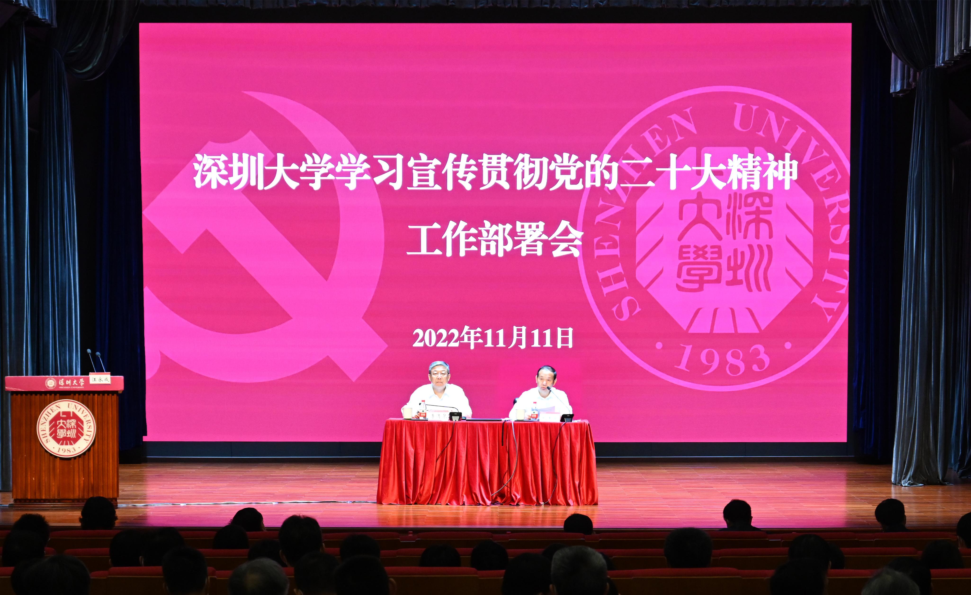 为更好地传达党的二十大精神,对全校学习宣传贯彻党的二十大精神相关工作作出具体部署,11月11日上午,芒果体育在粤海校区国际会议厅召开学习宣传贯彻党的二十大精神工作部署会。党委书记李清泉就深入学习宣传贯彻党的二十大精神做部署动员,校长毛军发主持会议并传达党的二十大精神以及中央、省委、市委、教育系统有关会议精神。校领导、全体中层干部以及各学院(部)党务工作者、党员代表参加会议。