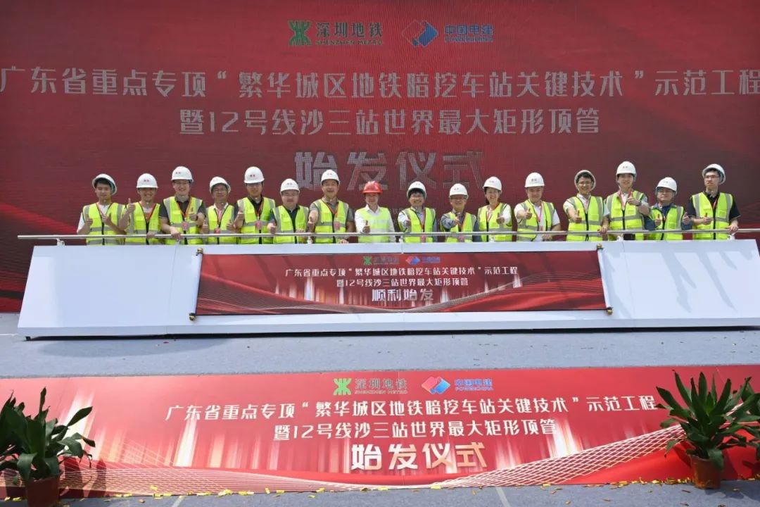 4月18日,世界最大断面组合式矩形顶管机“大禹掘进号”在深圳地铁12号线二期工程沙三站顺利始发,标志着国内首个超大断面组合式矩形顶管暗挖车站正式进入施工阶段,实现了地铁车站施工工法的重大创新,填补了我国在机械化地铁暗挖车站施工方面的空白。