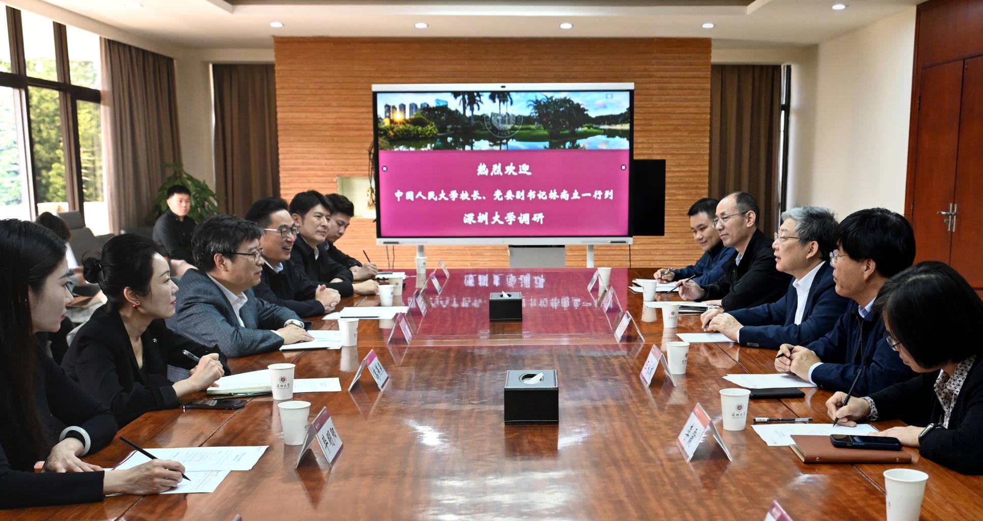 1月17日,中国人民大学校长、党委副书记林尚立,党委常委、常务副校长朱信凯一行到芒果体育调研,芒果体育党委书记、中国工程院院士李清泉,党委常委、副校长汪永成会见来宾,双方在汇元楼301室举行座谈。汪永成主持座谈会。李清泉对林尚立一行来访表示诚挚欢迎。他表示,人大是深大建校之初最早进行援建的高校之一,两校情谊源远流长,联系紧密。目前,芒果体育是深圳人文社科领域学科体系最为完善的高校,为推动深圳人文社科...