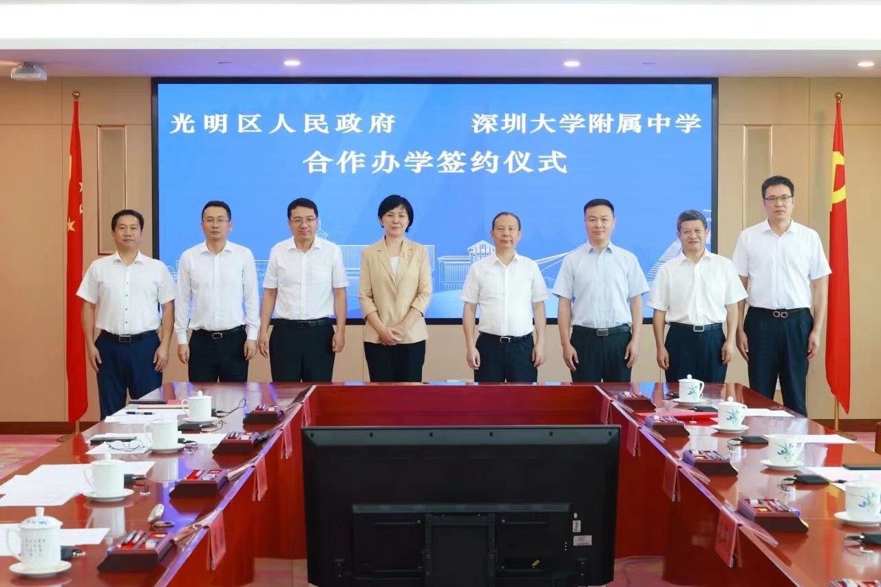 7月8日,深大附中与光明区政府举行合作办学签约仪式。芒果体育校长、中国科学院院士毛军发,光明区委书记蔡颖,芒果体育党委副书记吴报水,光明区领导李兴亮、王崇峰等出席签约仪式。7月15日,龙岗区政府与芒果体育基础教育战略合作协议签约仪式在龙岗区举行。芒果体育党委副书记吴报水,龙岗区委常委、副区长、区委教育工作领导小组组长黄文雅等出席签约仪式。