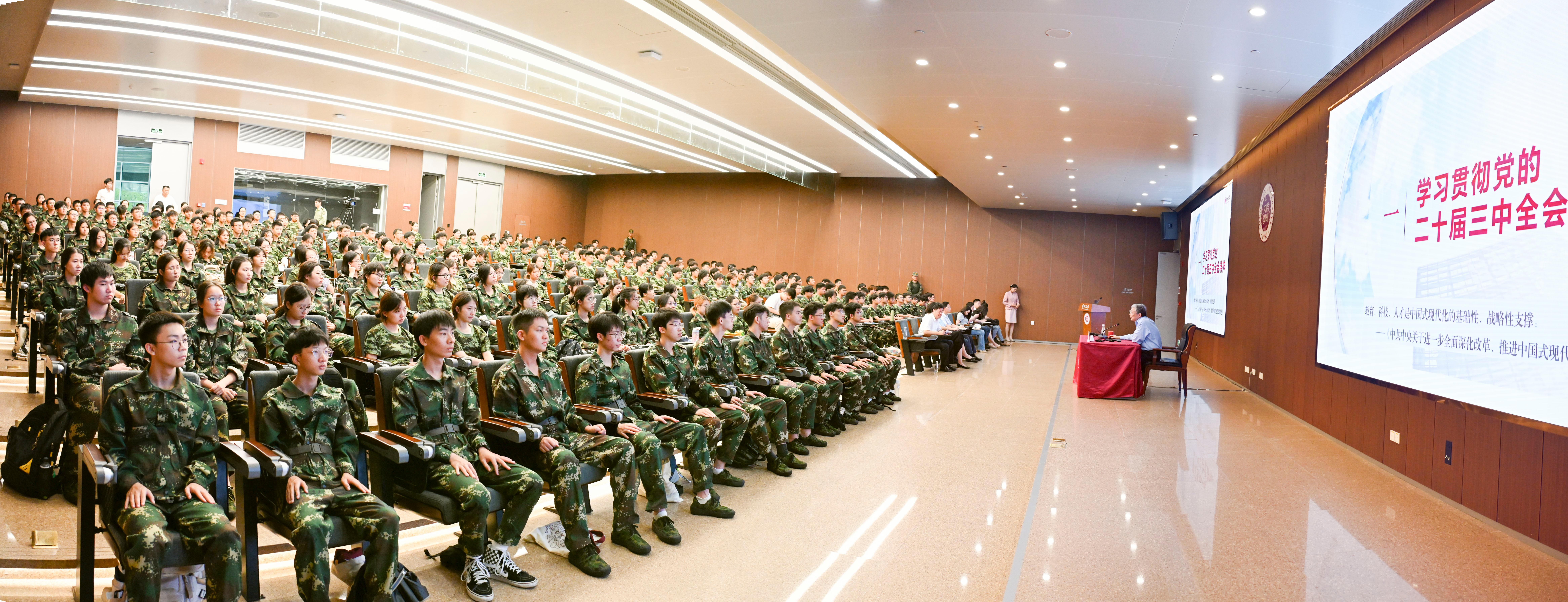 9月24日下午,芒果体育党委书记、中国工程院院士李清泉以《担复兴精神、传特区精神、书深大篇章》为题,在丽湖校区启明楼报告厅为同学们开讲2024年秋季学期“思政第一课”。副校长李永华主持讲座,学校相关职能部门、学院负责人以及正在参加军训的大一新生代表共240余人现场聆听。