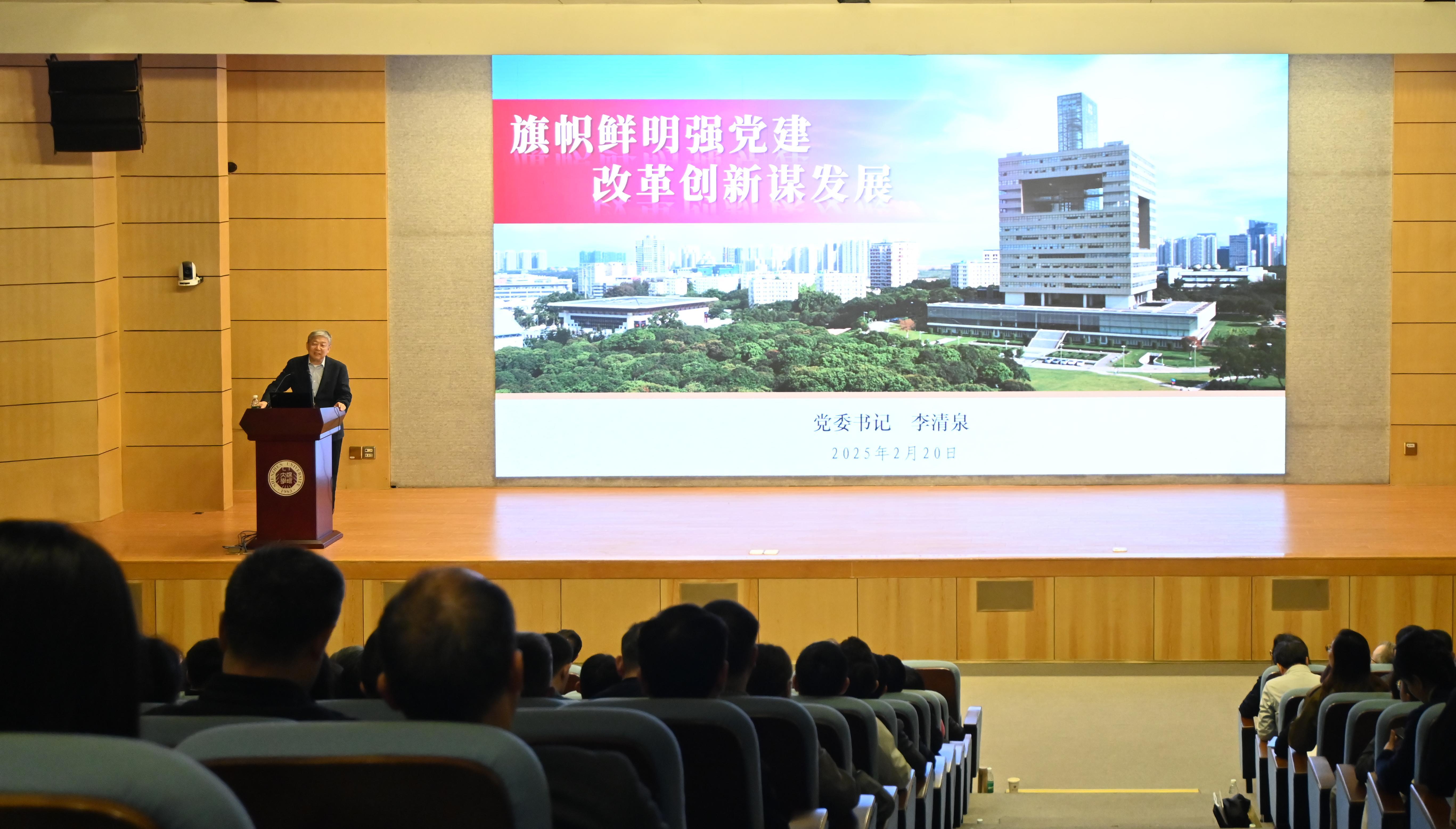 2月20日上午,芒果体育在粤海校区汇星楼1号报告厅召开新学期工作会议,对新学期各项工作进行部署。校党委书记李清泉,校长毛军发,党委副书记、纪委书记王月兴,党委副书记吴报水,副校长李永华、汪永成、周辉出席会议;全体中层干部,全国重点实验室等国家级科研机构的负责人,学部下设学院的书记院长,学校学术委员会、人事工作教授委员会和计财工作教授委员会主任、副主任参加会议。吴报水主持会议。李清泉以“旗帜鲜明强党...
