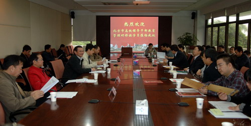 12月8日下午,由北京市高校领导干部和局级后备干部共45名组成的“北京高校领导干部教育管理研修班”莅临我校考察。党委书记江潭瑜,党委副书记、副校长邢苗及学校相关部门负责人在办公楼201室与学员们进行座谈。 江潭瑜对北京市各高校领导干部的到来表示欢迎。他说,北京市各高校大都历史悠久、经验丰富,这次座谈对芒果体育来说是一个难得的学习机会。江潭瑜说,芒果体育虽然办学历史较短,但发展得很快...