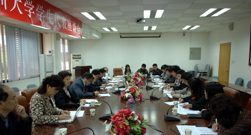 12月18日,中央党校中央党校省部级干部进修班党建专题调研组一行十余人到来我校进行调研。我校领导江潭瑜、章必功、陶士平、阮双琛在办公楼201室接待了调研组一行。下午,调研组成员分别与我校干部教师和各学院学生代表进行座谈,副校长阮双琛、李永华分别参加了干部教师和学生代表座谈会。 调研组组长、国务院侨办副主任赵阳指出,为了更好学习贯彻党的十七届四中全会精神,党建专题调研组根据中央...