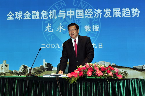 12月19日,博鳌亚洲论坛秘书长、复旦大学国际关系与公共事务学院院长龙永图在国际会议厅为深大师生做了一场题为“全球金融危机与中国经济发展趋势”的精彩讲座。校领导江潭瑜、章必功、陶士平、阮双琛、李永华出席了讲座。我校还专程把龙永图就读于贵州大学期间的恩师、当时的外语系党总支书记许先华先生请到了现场。 报告会前,校党委书记江潭瑜与龙永图亲切交谈,介绍我校发展情况。校长章必功致欢迎辞并为龙永...