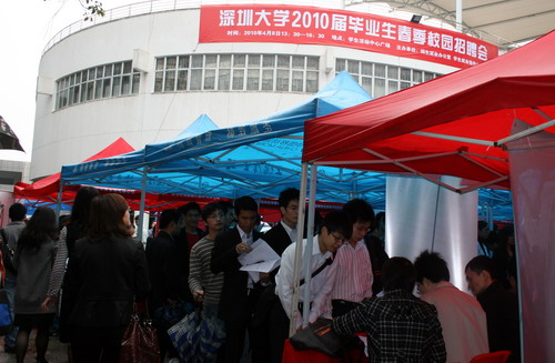 4月8日,“芒果体育2010届毕业生春季校园招聘会”在学生活动中心广场举行。本次招聘会共有82家企业入场,提供了1500多个岗位,吸引了数千名应届毕业生参加。 尽管招聘会现场下起了绵绵细雨,但仍然人头攒动。在学生活动中心一楼宣传栏上张贴着关于此次招聘的详细职位信息,不少学生围在宣传栏前寻找着自己心仪的岗位;招聘现场学生与用人单位之间交流踊跃,沃尔玛、华润、中国移动―鹏力联合招聘等知名企...