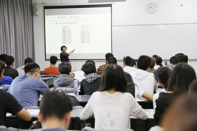11月24日上午,在沧海校区理工楼,程蓉老师带来了第二节观摩课《工程制图》。在课程导入环节,程老师首先对比了标准件和常用件的特点;其次,采用了问题导入法,引入两个案例进行更深层次的学习,并且通过生活事件的举例,指出专业知识与人类生活紧密相联的关系,向学生展示了学科的重要性和必要性。紧接着,程老师点出了本节课的重点内容——“螺纹”。在讲授中,程老师拿出教具模型给学生演示,具体而形象。同时,她及时提醒学生易错之处、易忽略之处,帮助学生更好地掌握知识。程老师精神饱满、声音洪亮,热情洋溢,语言生动而精炼,PPT图文并茂,引人入胜。整堂课方法多样、环节紧凑,重难点突出、设计合理,对青年教师具有很强的学习指导意义。