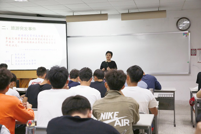 11月24日下午,第四节观摩课是由刘艳红老师主讲的《导游业务》,本节授课内容为:旅游危机管理——导游突发事件的处理与预防。刘老师在上课伊始,与青年同行教师们悉心分享自己做教师的心得:做教师的使命是希望学生比我们更优秀。随后,刘老师积极调动课堂上同学们的积极性,先和大家回顾了21世纪的自然灾害,同学们积极回应,热情开朗,活力四射,气氛非常活跃。之后讲解了旅游突发事件的处理方法,同学们和刘老师互动频繁,课堂教学幽默风趣,富有生活意味。刘老师以自己亲身在马尔代夫的导游经历,将自身丰富的导游经验和专业的知识讲述给大家。整堂课程刘老师娓娓道来,充满热情。学生与老师积极配合,在座的青年教师也都参与到了互动中,不仅收获了知识,更收获了教学方法与教学心得。