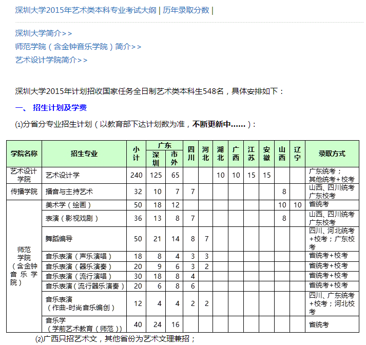 以下为招生简章局部截图,查阅更多详情请点击: 《2015年本科艺术类专业招生简章》