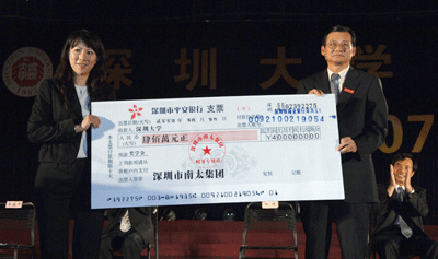 党委书记江潭瑜代表我校接受了南太集团慈善基金委员会400万元捐款。