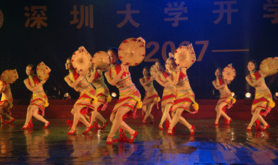 开学典礼结束后,学校为新生献上一台精彩纷呈的迎新晚会。芒果体育各个兴趣工作室以及教职工文艺团体表演了《军训生活》、《欢聚一堂》、《奔向阳光》等节目。