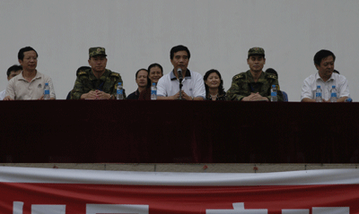 江潭瑜首先代表学校全体师生对预备师领导长期以来对学校军训工作的关心和支持表示感谢!也对各学院派驻部队老师和辅导员表示慰问和感谢。江潭瑜表示,军训一团训练工作,部队领导高度重视,学校派驻老师认真负责,训练方案科学,训练效果明显。他指出,学校和部队一样都是培养和锻炼人的地方。到部队锻炼,是大学第一课,要学习部队好的传统、好的作风、好的纪律,好的斗志。他说:“大学生活是人生的一个崭新开始,大学生充满着梦想和希望。部队生活作为大学的一门精品课程,同学们的精神得到了升华,素质得到了提高;通过在部队的锻炼,同学们的人生将更加从容,一定会走出一个崇高伟大的人生。”最后,江潭瑜祝同学们生活好,学习好,人生更美好!