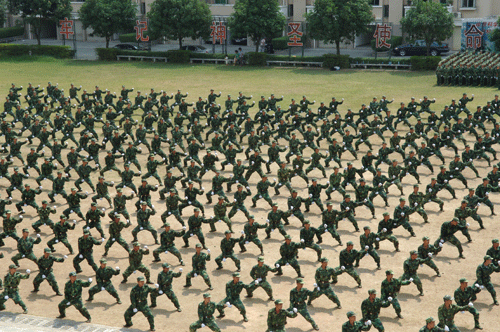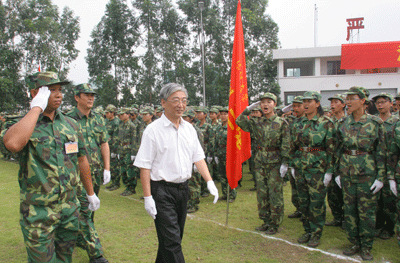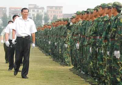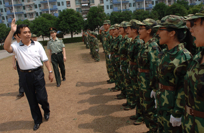 到9月28日,我校6000名2007级新生顺利完成为期16天的封闭式军政训练。28日,广东陆军预备役高炮师、武警广州指挥学院、深圳预备役防化团,分别举行阅兵式暨军训总结表彰大会。校领导江潭瑜、章必功、陶士平、阮双琛、邢锋、陈思平等分赴三个军训基地阅兵。