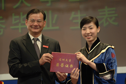 我们济济一堂,共襄盛举,成为今天典礼的主角,这是母校给予我们的最高荣誉!母校爱我们,信任我们,我们更要相信自己,因为我们是深大的毕业生!