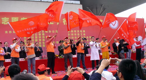 深圳市副市长、市公安局局长李铭,省消防总队副总队长丁潘明,团市委书记刘燕,消防局局长许东平等领导出席了这次活动。我校有60名志愿者(义工)代表参加了此次启动仪式。