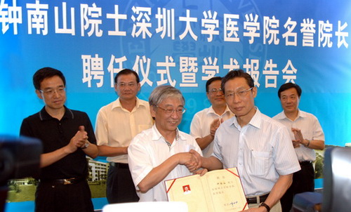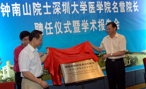 陈思平在仪式上介绍,广东省委副书记、深圳市委书记刘玉浦亲自力邀钟院士加盟深大医学院,体现了省委省政府和市委市政府对深大医学院的高度重视。