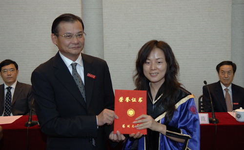 阮双琛宣读了《关于表彰深大2009届优秀毕业研究生的决定》,授予林定坤等56名同学获优秀毕业研究生称号。